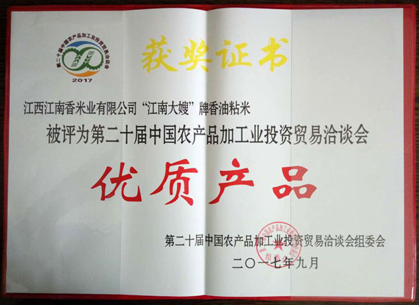 第十一屆中國(guó)國(guó)際農(nóng)產(chǎn)品交易會(huì)參展產(chǎn)品金獎(jiǎng)